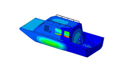 描述:根據《內河高速船入級與建造規范》,對空氣艇船體局部強度和整體振動特性進行驗證。 所屬行業:船舶海工 項目難點:相關規范的應用、慣性釋放、附連水模態